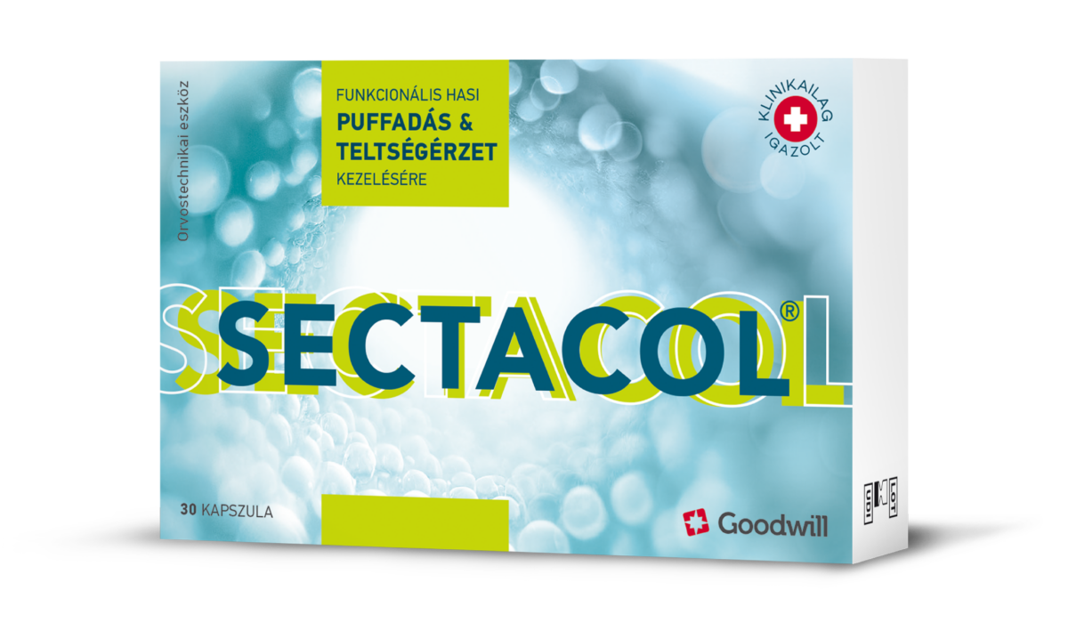 A Sectacol® funkcionális hasi puffadás és teltségérzet kezelésére alkalmas, beleértve a kontaminált vékonybél szindrómát (SIBO) és az ahhoz társuló, bélgázokkal összefüggő tüneteket, például a has puffadását, a fokozott bélgázképződést és a hasi fájdalmat.